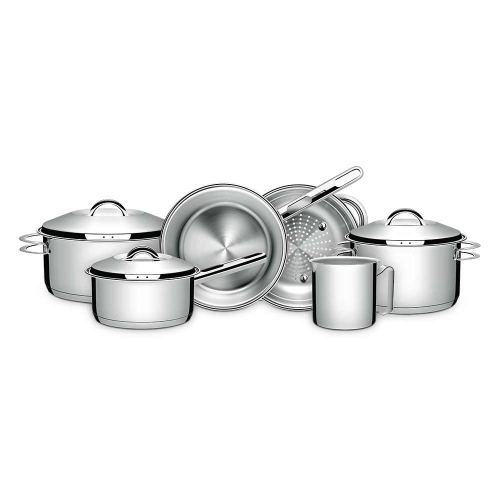 O Jogo de Panelas Tramontina Solar em Aço Inox com Fundo Triplo e Tampas de Inox 6 Peças é um clássico Tramontina. Práticas e duráveis, as seis peças são produzidas totalmente em aço inox, que mantém os alimentos saudáveis já que o material não solta resíduos. Possuem fundo triplo (aço inox + alumínio + aço inox), característica que distribui o calor de forma uniforme, proporcionando um cozimento mais rápido e deixando os alimentos aquecidos por mais tempo, além de economizar mais energia. São peças versáteis que podem ir ao forno para gratinar ou finalizar pratos na temperatura máxima de 260°C e ser utilizadas em diferentes tipos de fogões. Possuem tampa com encaixe perfeito e saída de vapor. São ainda muito estilosas. O acabamento em alto brilho faz delas as melhores escolhas para uma cozinha mais bonita. São fáceis de limpar devido ao desenho sem cantos, além de poderem ir à máquina de lavar louças diariamente. A escolha perfeita para ter uma cozinha muito mais completa!