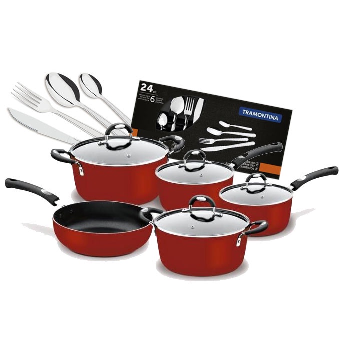 Quem busca qualidade e funcionalidade para sua cozinha, precisa contar com o jogo de panelas Tramontina Mônaco em alumínio com revestimento interno e externo em Starflon Premium 05 peças. Essenciais para um dia a dia na cozinha muito mais prático, as peças do jogo são produzidas em alumínio e contam com revestimento em antiaderente Starflon Premium. Devido as essas características, as peças cozinham os alimentos de maneira rápida e uniforme, evitam que eles grudem na superfície e são super fáceis de limpar. As panelas e as caçarolas vem com tampa de vidro temperado com bordas de aço inox e saídas de vapor que auxilia no preparo das receitas e facilita a visualização. Os cabos, alças e pegadores são metálicos com proteção em silicone e não aquecem, garantindo assim, um manuseio muito mais seguro. Além de todas essas características, as peças ainda podem ir à máquina de lavar louças, otimizando suas tarefas na cozinha!