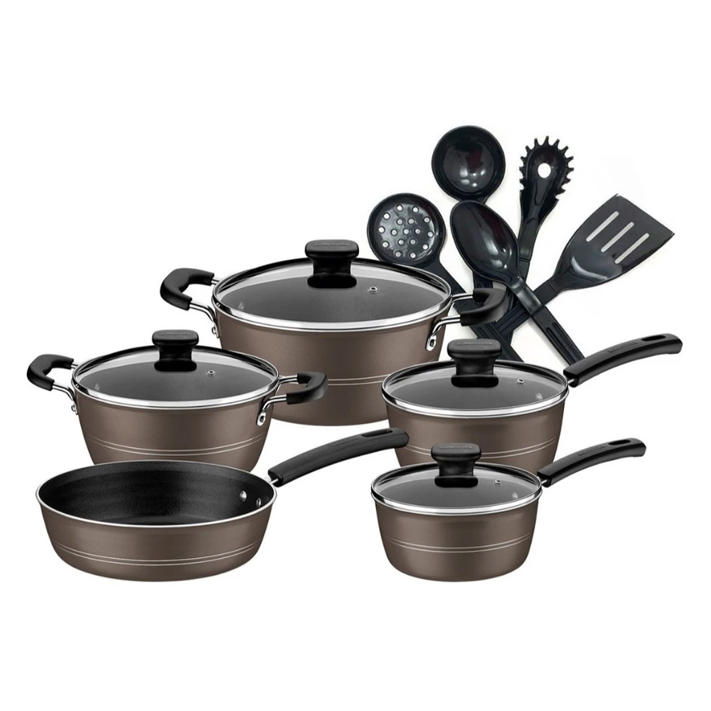 - Corpo de alumínio com espessura que proporciona cozimento rápido e uniforme.