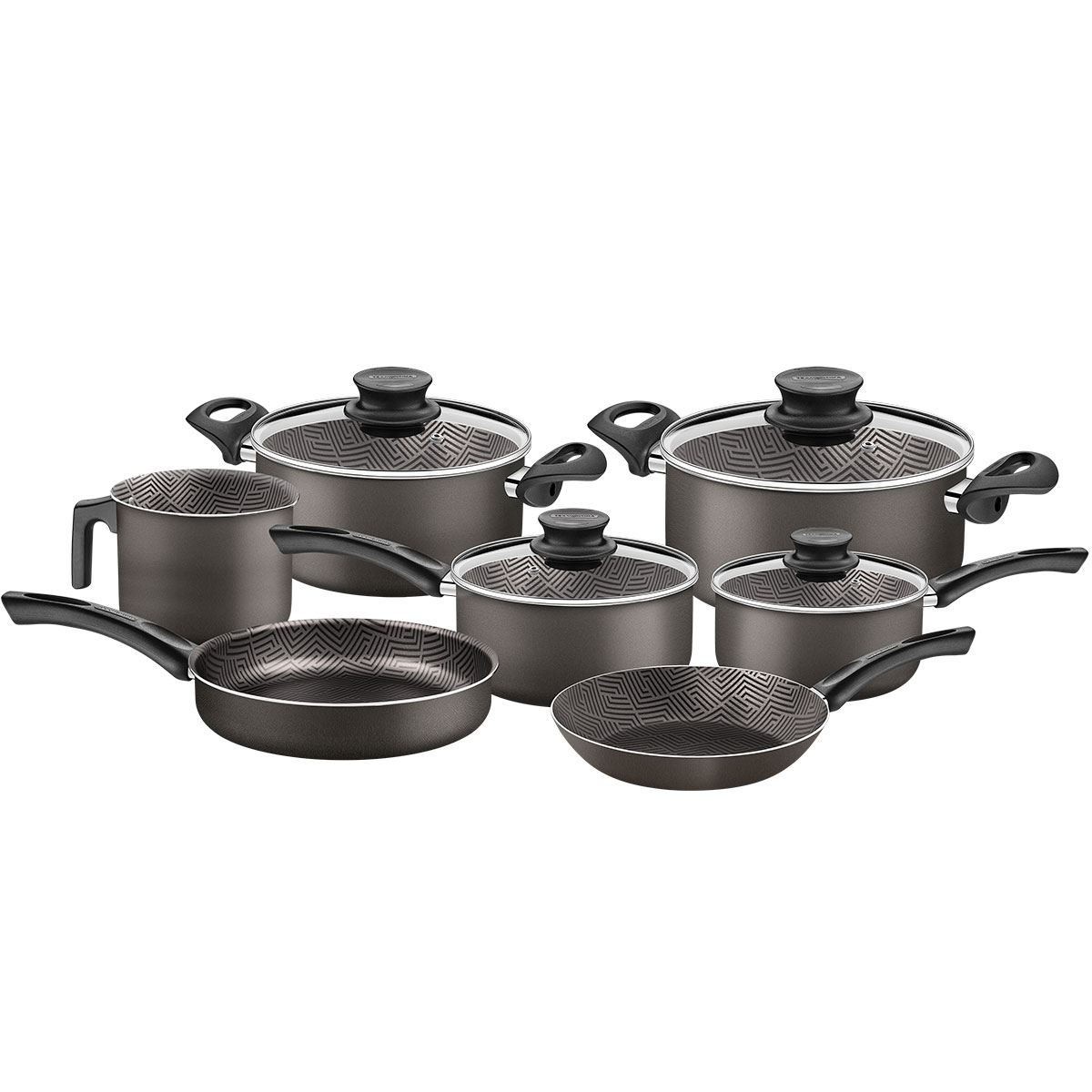 Jogo de Panelas Tramontina Paris em Alumínio com Revestimento Interno e Externo Antiaderente Starflon Max Chumbo 7 Peças