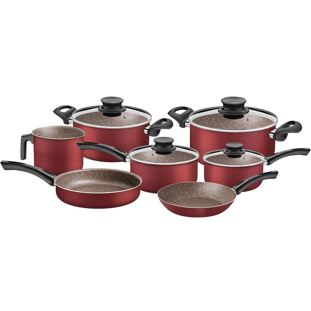O jogo de panelas Tramontina Paris em alumínio com revestimento interno e externo antiaderente Starflon Max vermelho 7 Peças tem itens especiais para o sucesso das suas tarefas na cozinha! Ele tem peças produzidas em alumínio com revestimento interno e externo antiaderente Starflon Max, atributos que proporcionam o cozimento uniforme dos alimentos e evita que eles grudem em suas superfícies. Suas panelas e a caçarola possuem tampas de vidro temperado com bordas em aço inox e seus cabos e alças são em baquelite antitérmico e os pegadores em nylon, materiais que proporcionam um manuseio seguro e confortável, pois não aquecem. Além disso, é um jogo fácil de limpar e que pode ir à máquina de lavar louças. Com a Tramontina, você tem o melhor para equipar sua cozinha!