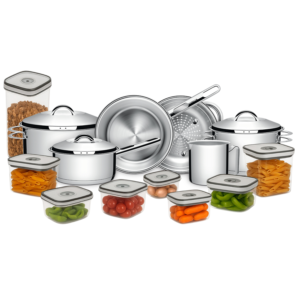 - Máxima Organização: Formatos inteligentes com tamanhos funcionais e empilháveis que facilitam a organização na sua cozinha.