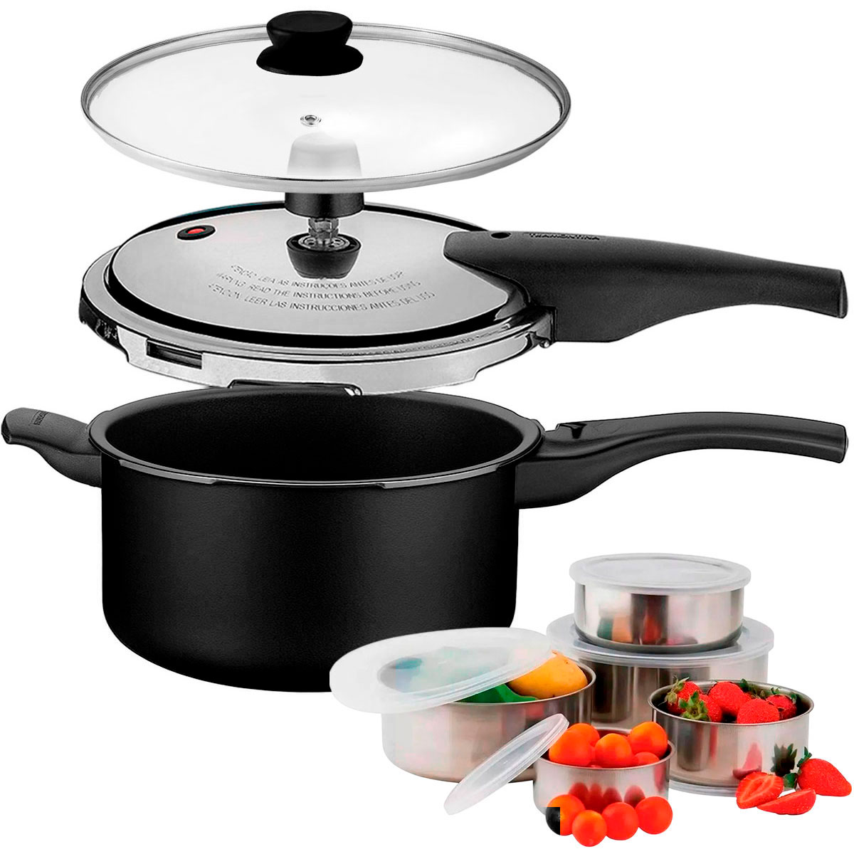 - Panela de Pressão Tramontina Vancouver Effect de 80 kPa de pressão de trabalho.