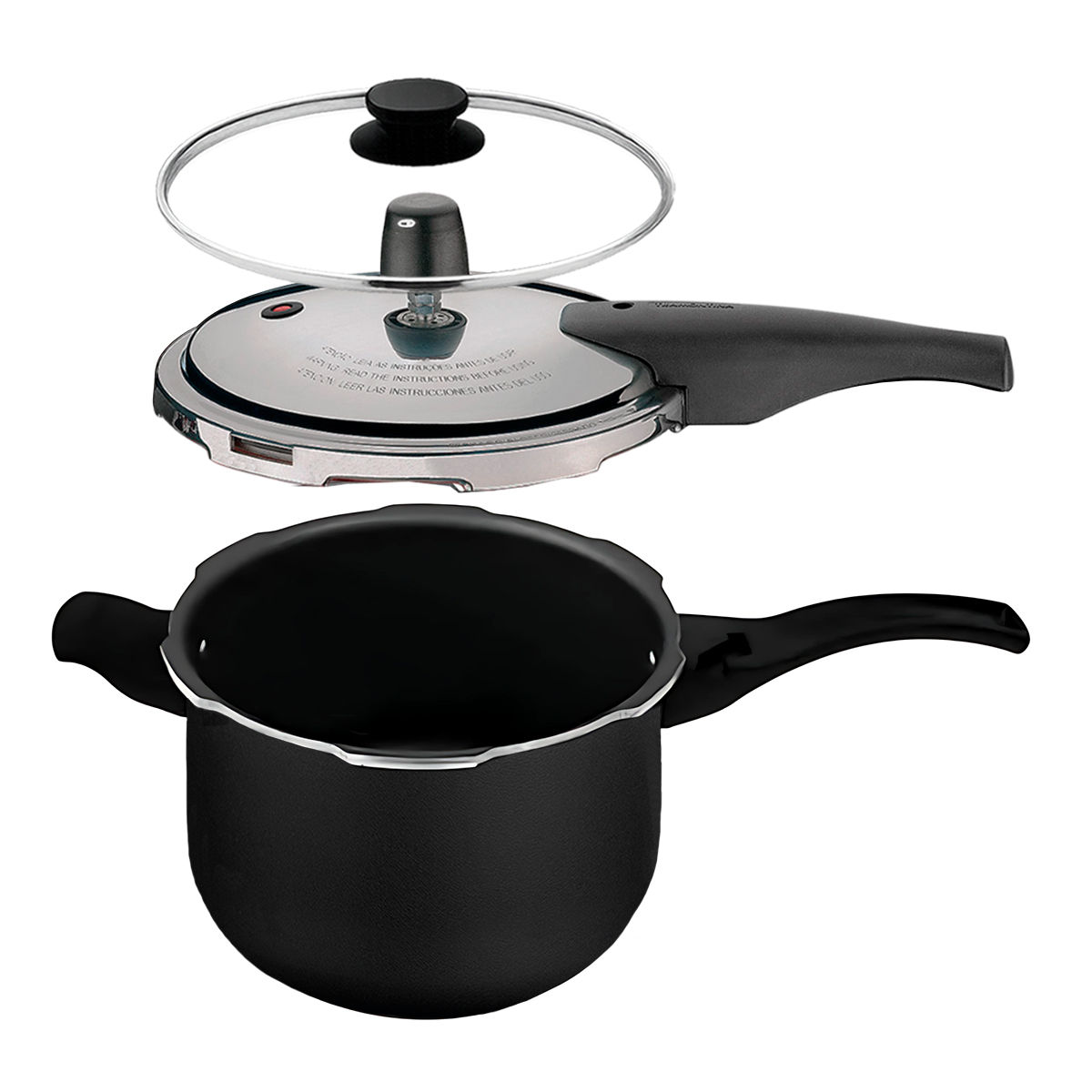 - 01 Panela de Pressão Tramontina Vancouver Effect com Tampa em Alumínio com Revestimento Interno e Externo em Antiaderente Starflon Max Preto 20 cm 4,5 L