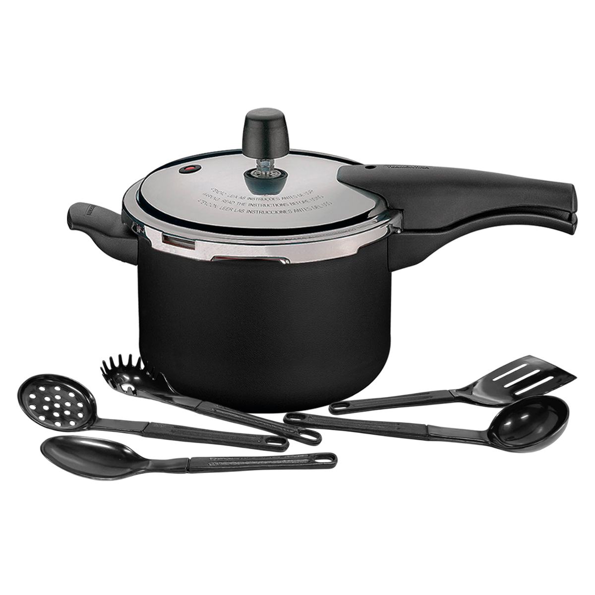 - 01 Panela de Pressão Tramontina Vancouver Effect em Alumínio com Revestimento Interno e Externo em Antiaderente Starflon Max Preto 20 cm 4,5 L
