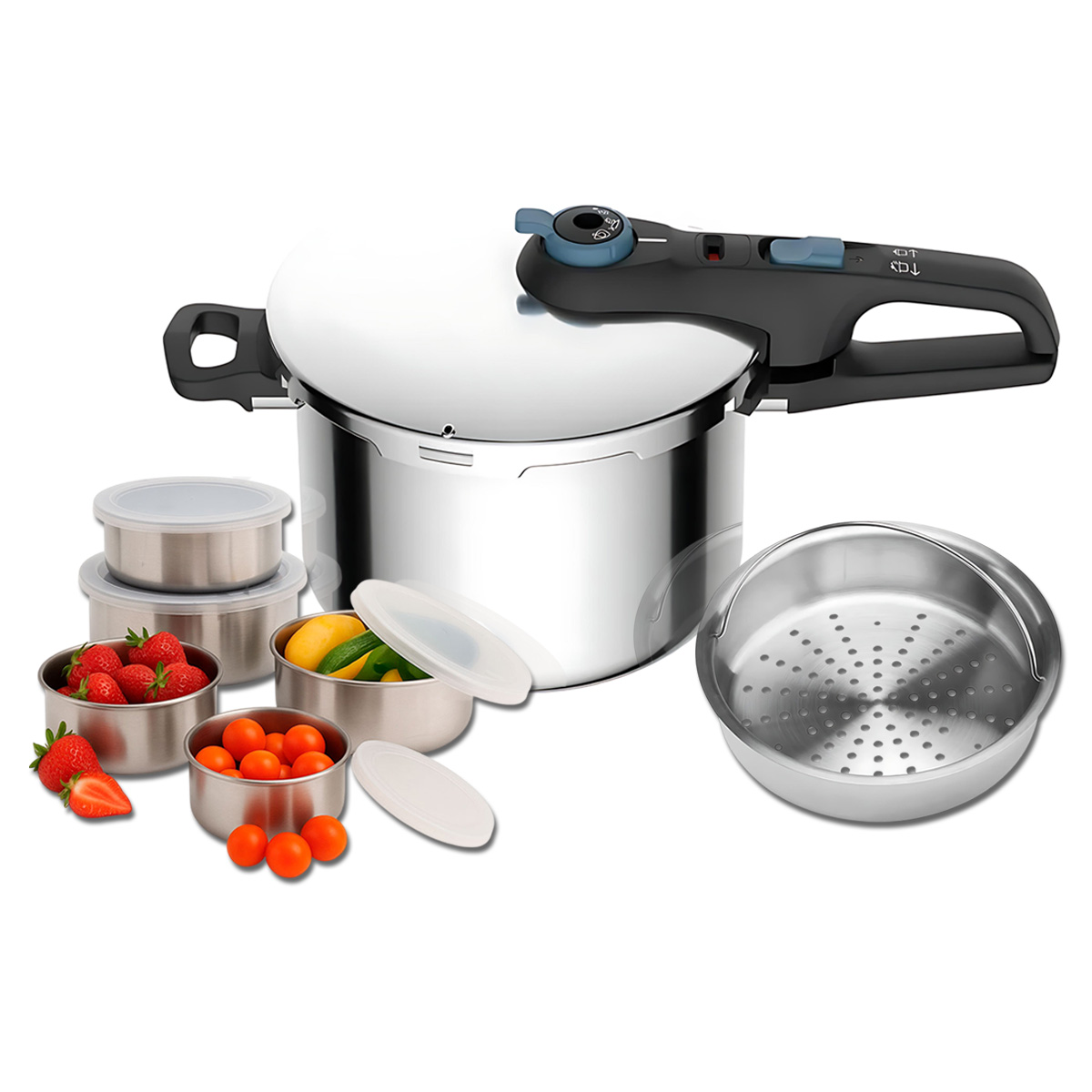 - Essa panela possui dois níveis de pressão, para preservar os nutrientes e garantir o cozimento adequado: um para ingredientes mais robustos, como proteínas e grãos, e outro para preparar alimentos mais delicados, como vegetais.
